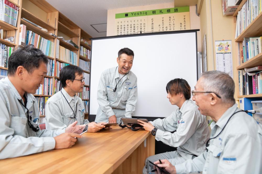 現場でも、事務所でも、一人ひとりが能力を発揮し、目標を持ってステップアップできるよう、また若いスタッフも気軽に発言できるよう、職場の雰囲気づくりや待遇に心を配り、コミュニケーションを大切にしています。
