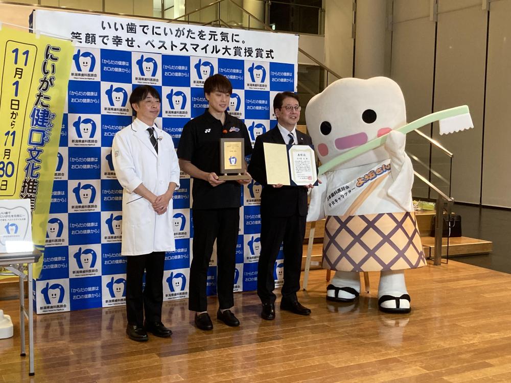 2025年の「いい歯でにいがたを元気に。笑顔で幸せ、ベストスマイル大賞」は、プロバスケット、アルビレックスBBの五十嵐圭選手が受賞しました。