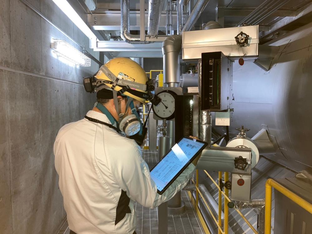 リサイクル施設が安全に稼働できるよう、モニターでの監視や施設・機械の点検を実施。